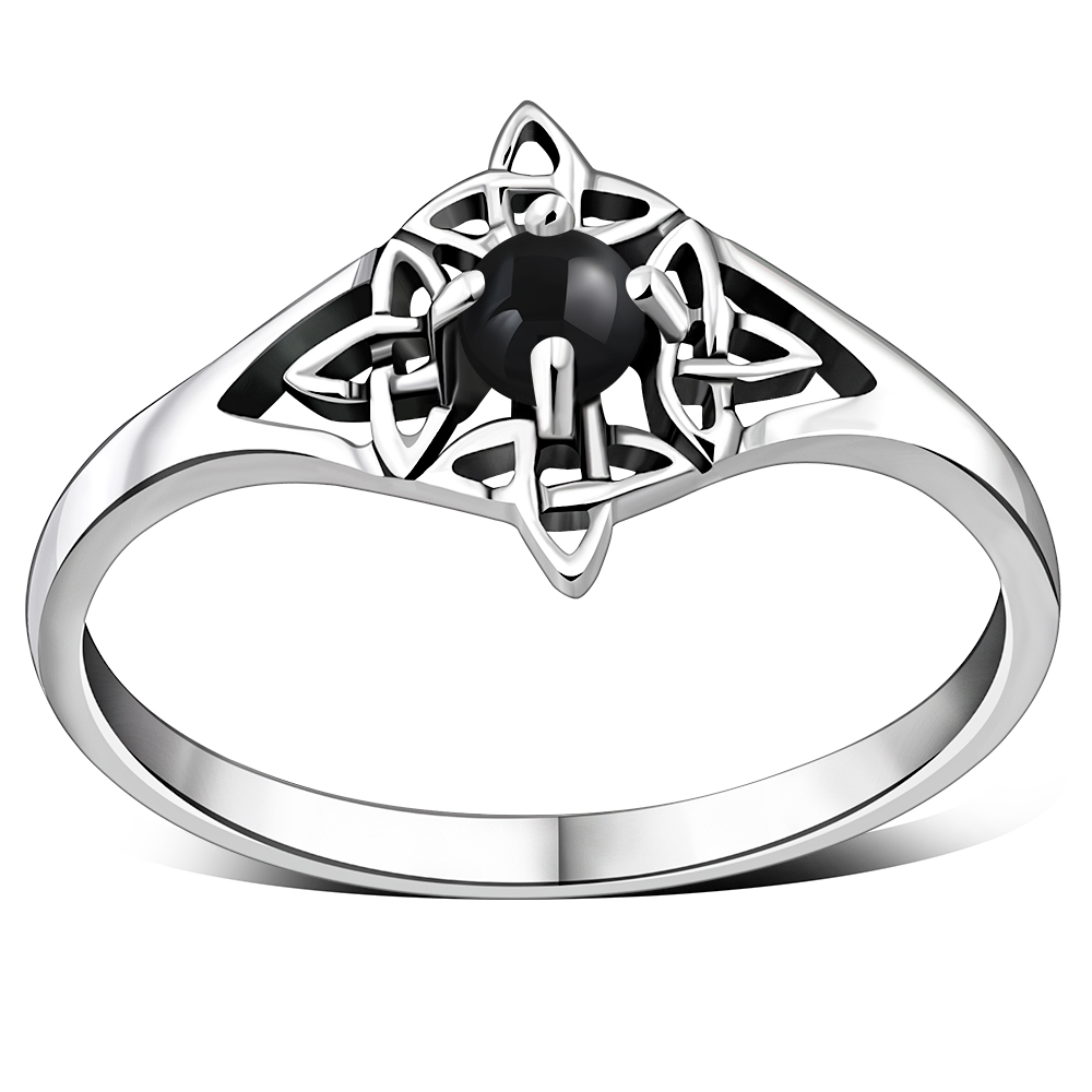 Theme: Delicate Black Onyx Celtic Knot Silver Ring.