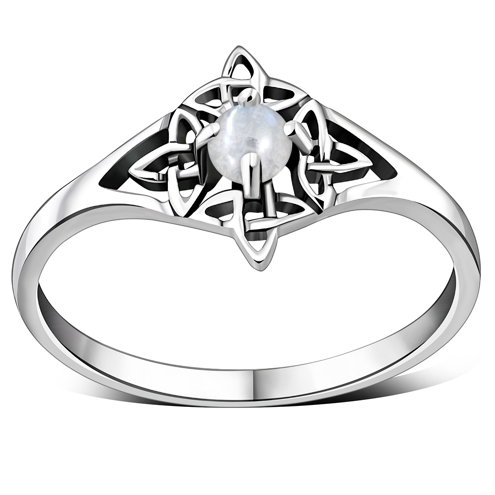 Delicate Rainbow Moonstone Celtic Silver Ring