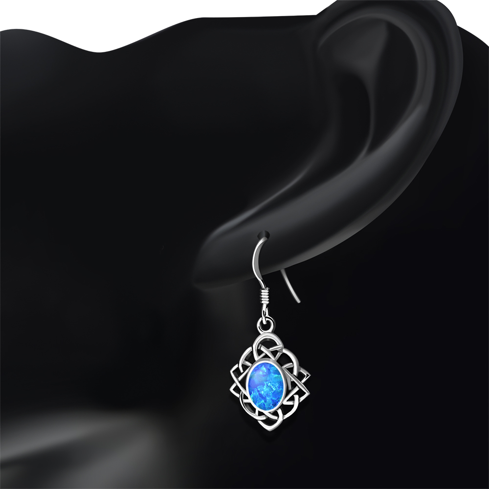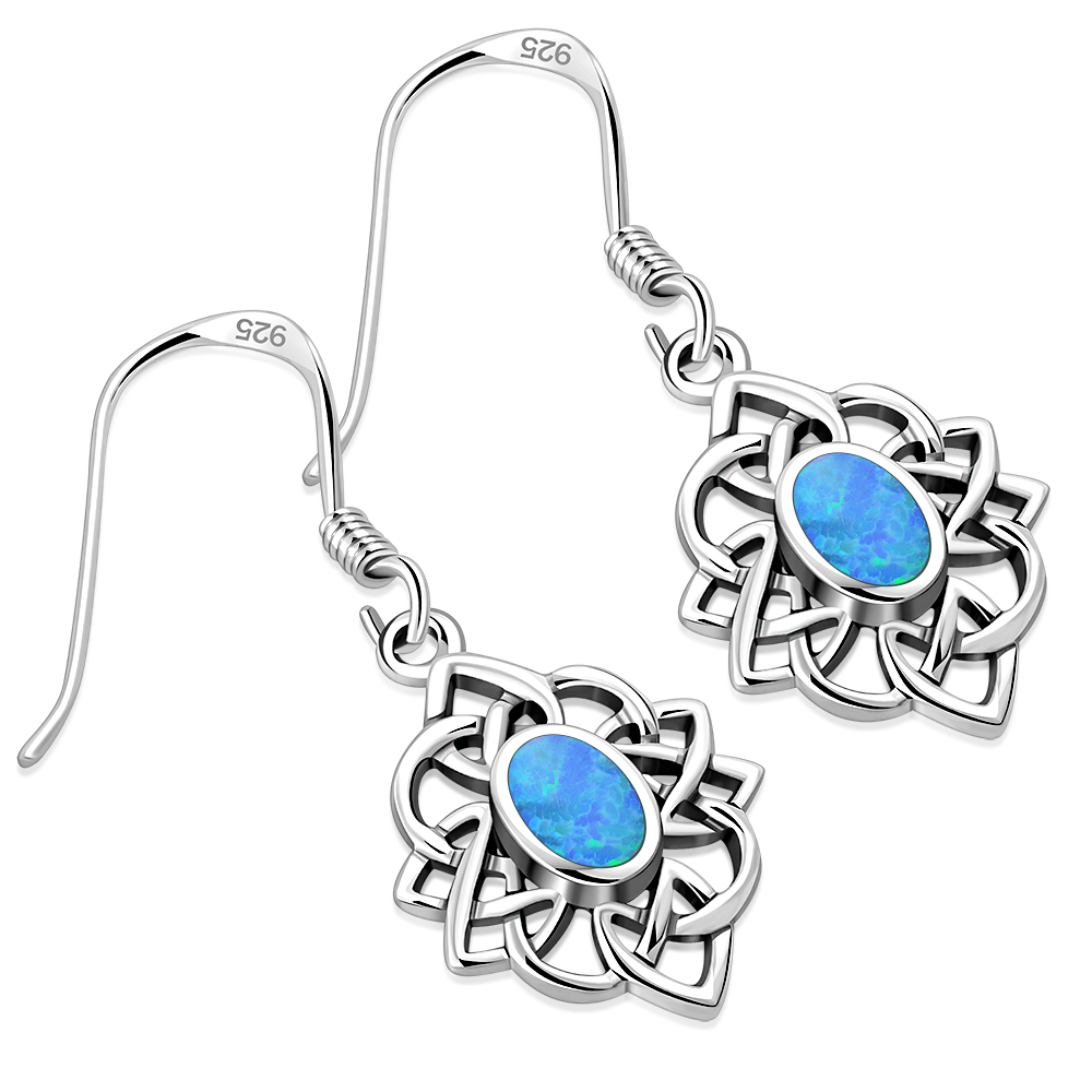 Theme: Synthetic Opal Celtic Knot Silver Earrings.