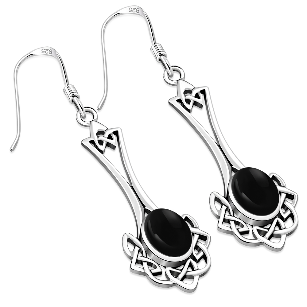 Long Celtic Knot Silver Earrings set w Black Onyx.