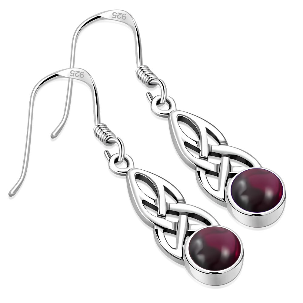 Garnet Stone Celtic Silver Earring.