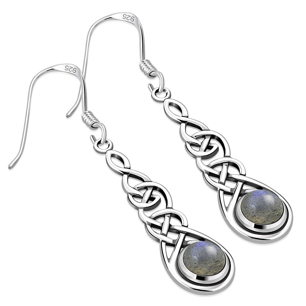 Labradorite Celtic Silver Long Drop Dangle Hook Earrings