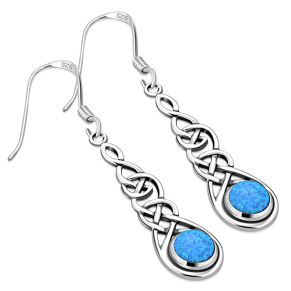 Celtic Long Earrings w Synthetic Opal
