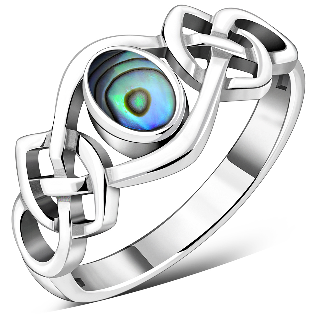 Abalone Sea Shell Celtic Knot Silver Ring, r264