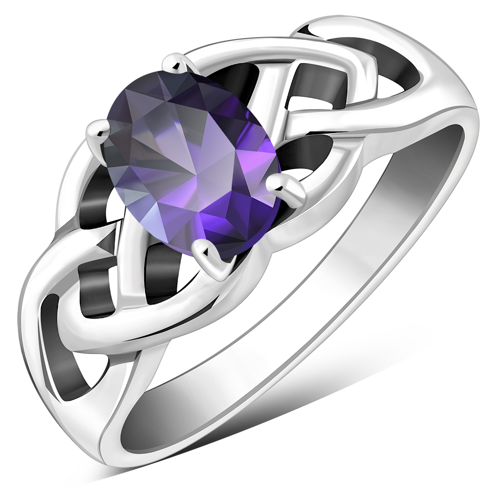 Theme: Amethyst CZ Celtic Knot Silver Ring.