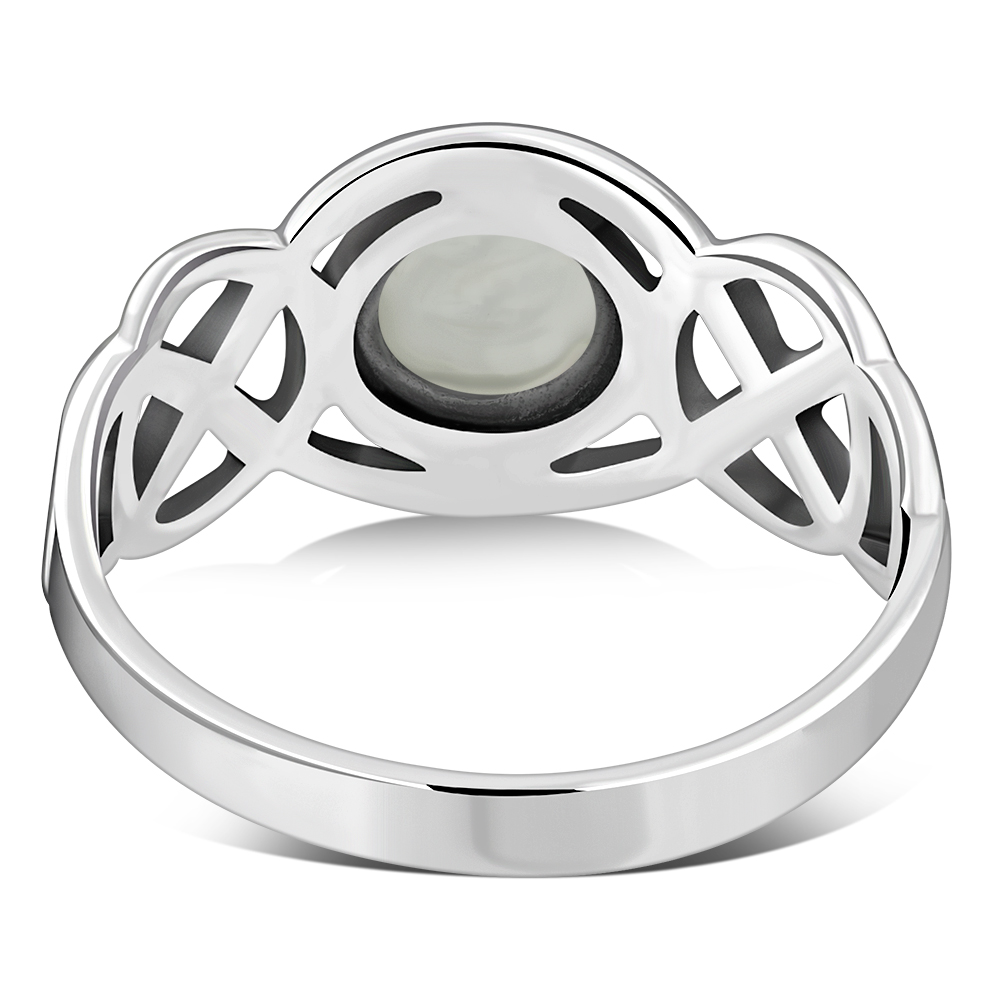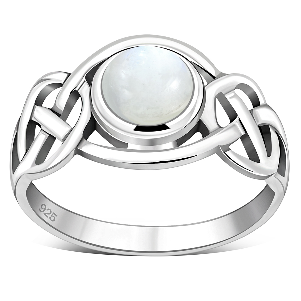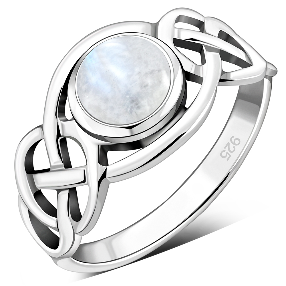 Theme: Celtic Knot Sterling Silver Rainbow Moonstone Ring.