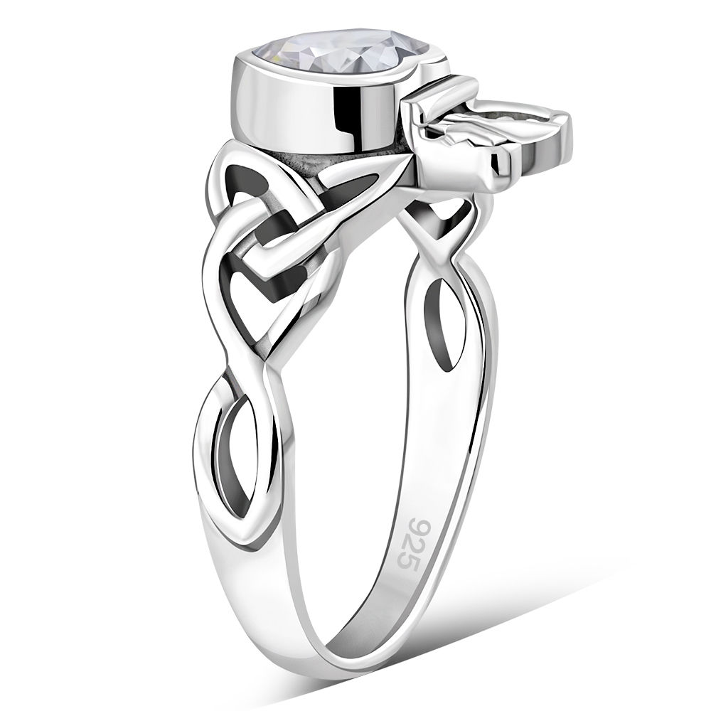 Trinity Knot Clear CZ Claddagh Silver Ring