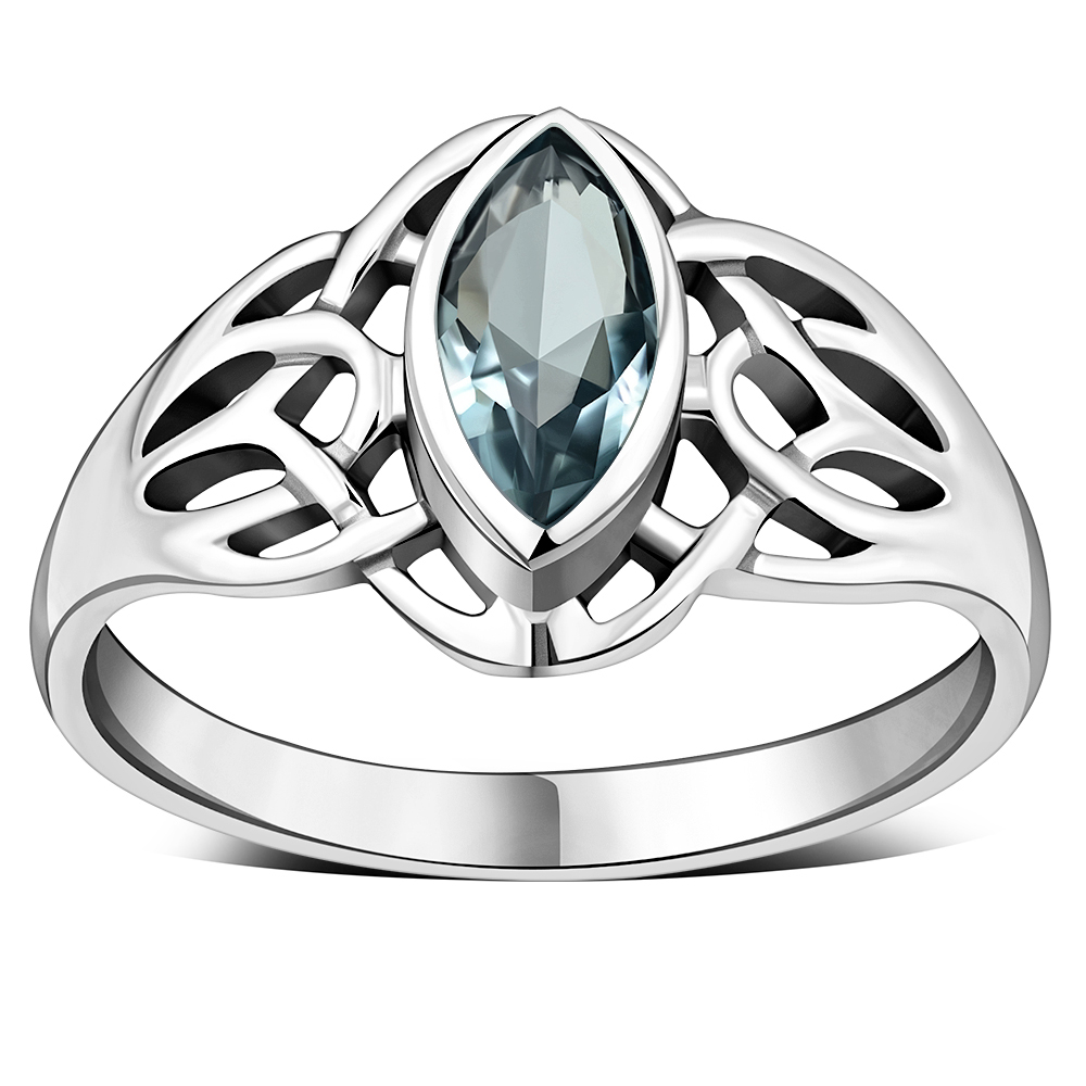 Celtic Knot Blue Topaz CZ Silver Ring.