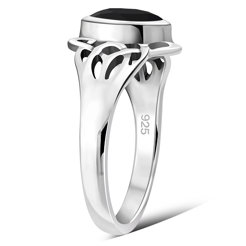 Celtic Knot Faceted Black Onyx Silver Ring, r545