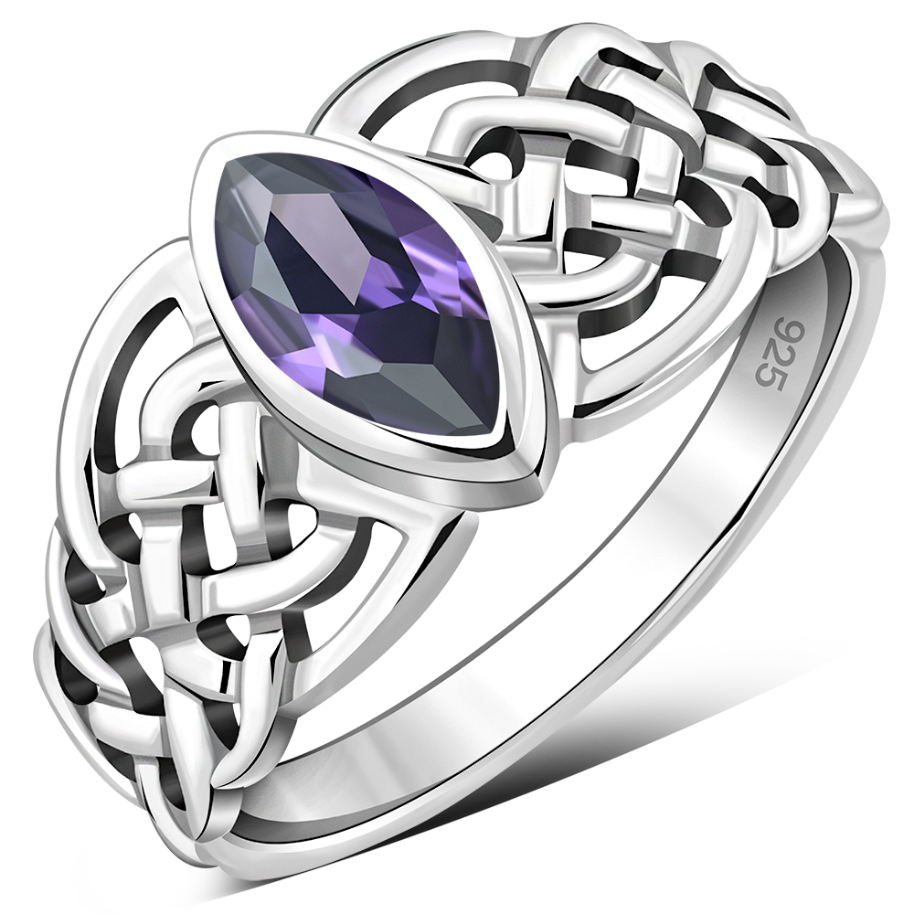 Marquise cut Amethyst Stone Celtic Silver Ring, r539
