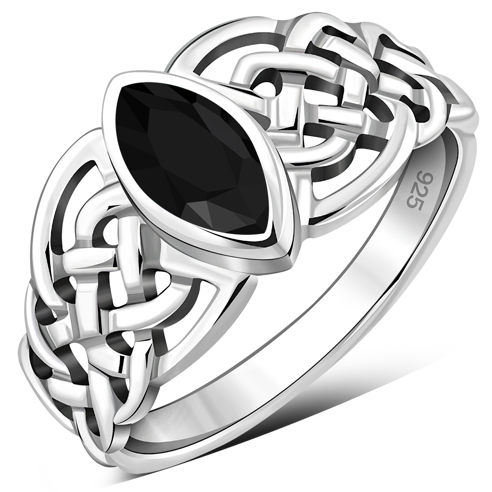 Marquise cut Black Onyx Celtic Silver Ring, r539