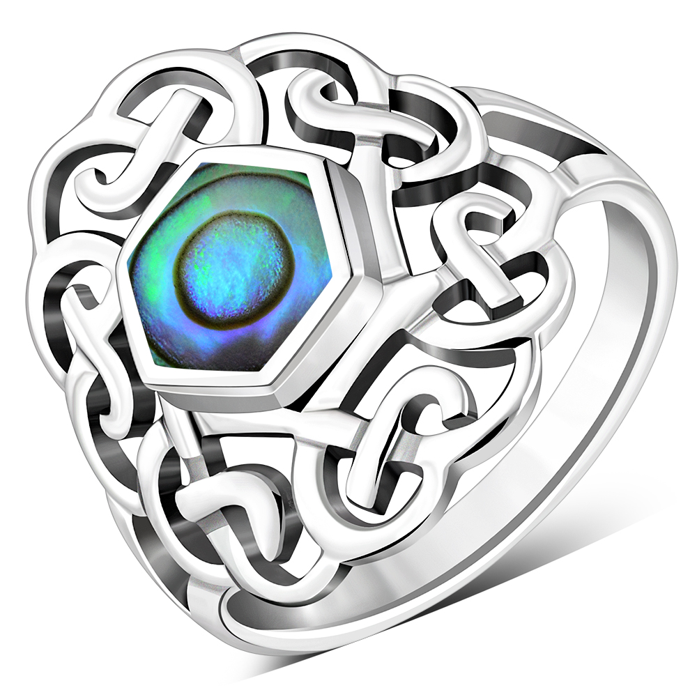 Abalone Shell Celtic Knot Silver Ring, r536