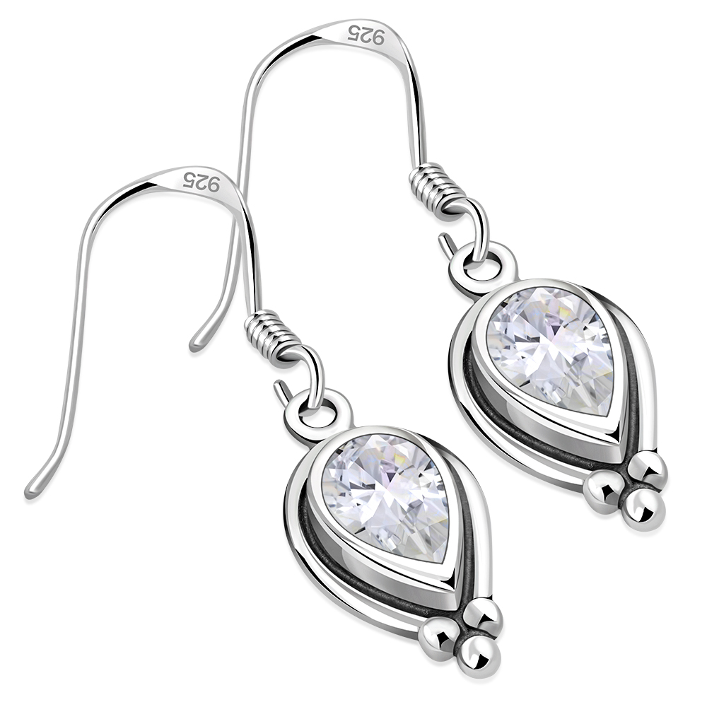 as: Clear CZ Ethnic Style Silver Earrings, Clear CZ Ethnic Style Earrings,