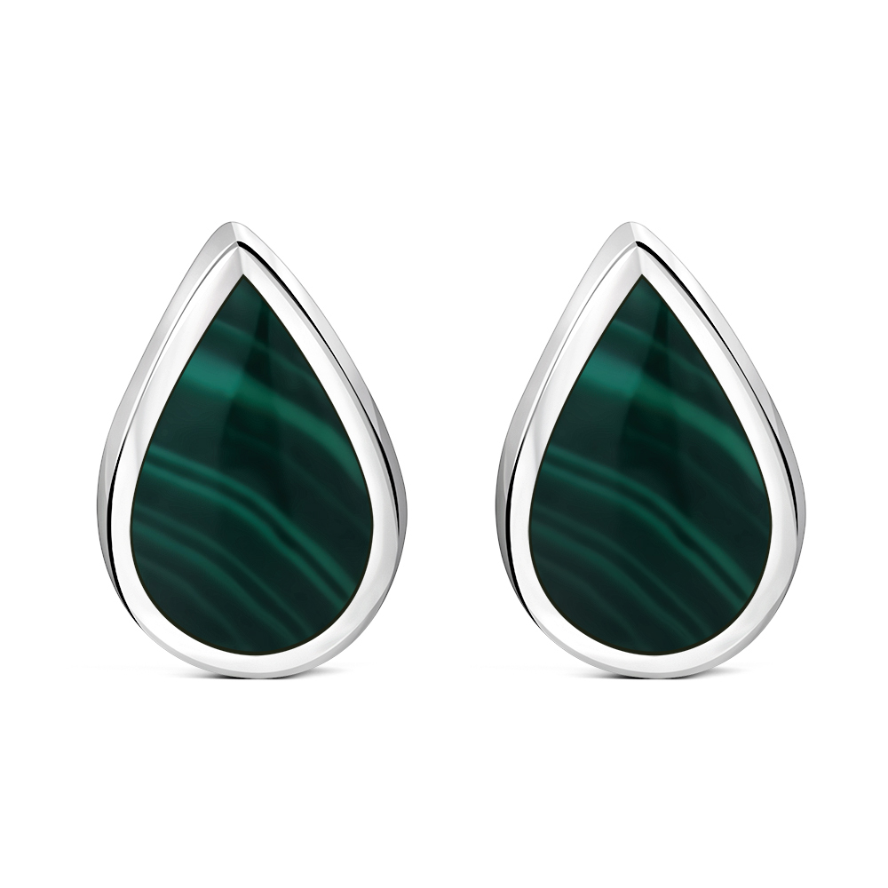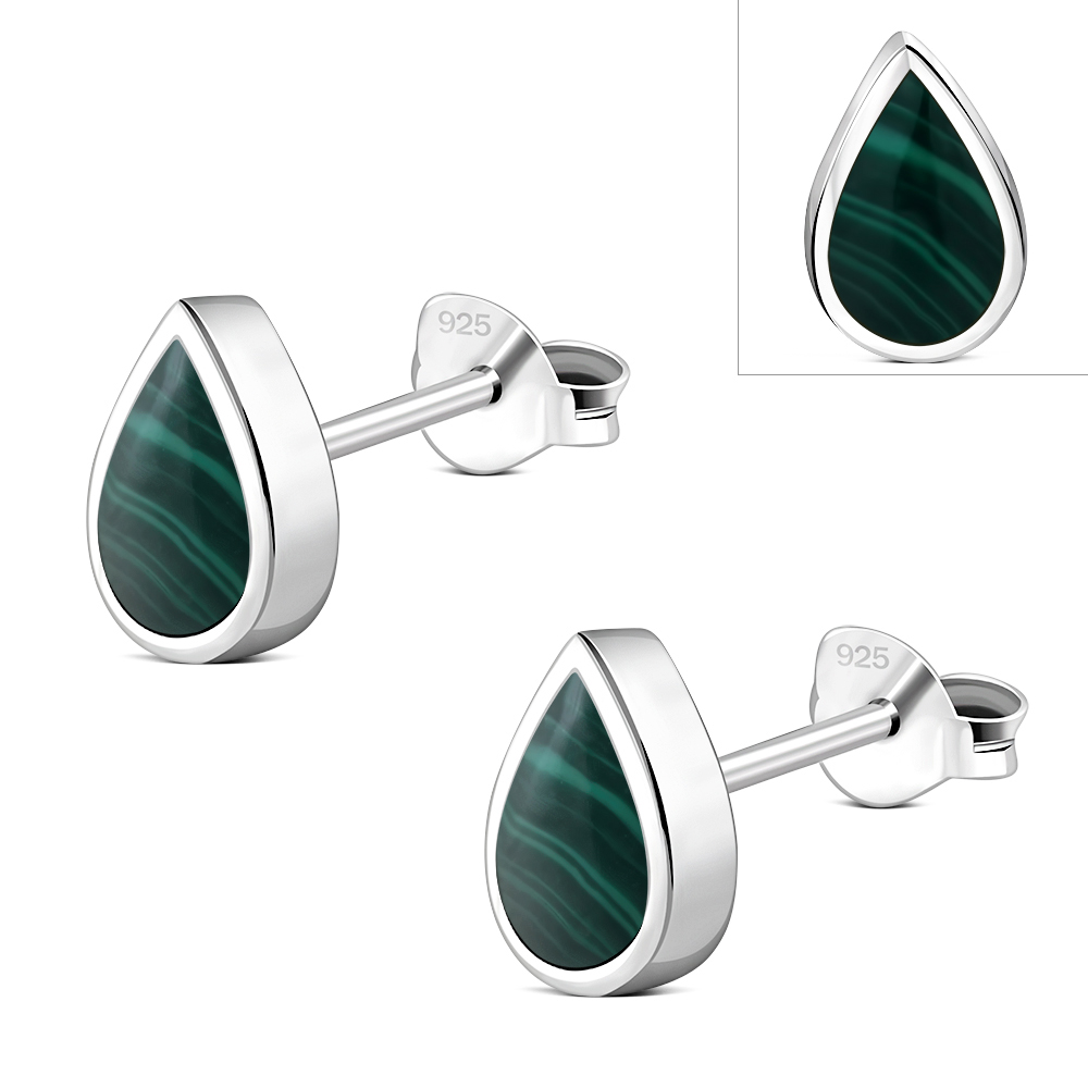 Malachite Drop Silver Stud Earrings