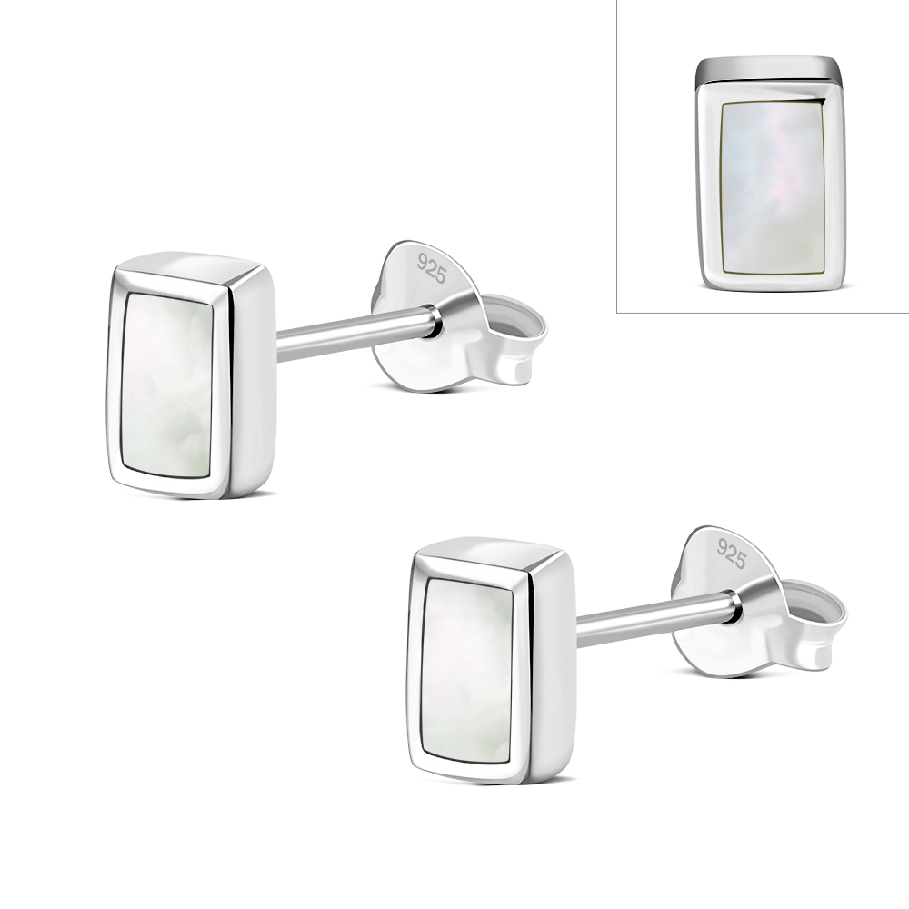 Theme: Mother of Pearl Rectangle Silver Stud Earrings.