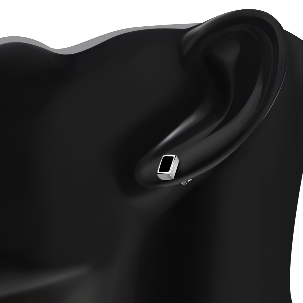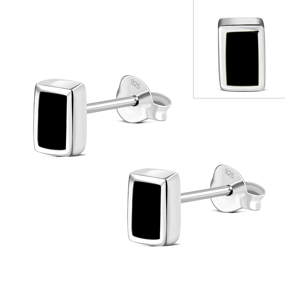 Theme: Black Onyx Rectangle Silver Stud Earrings.