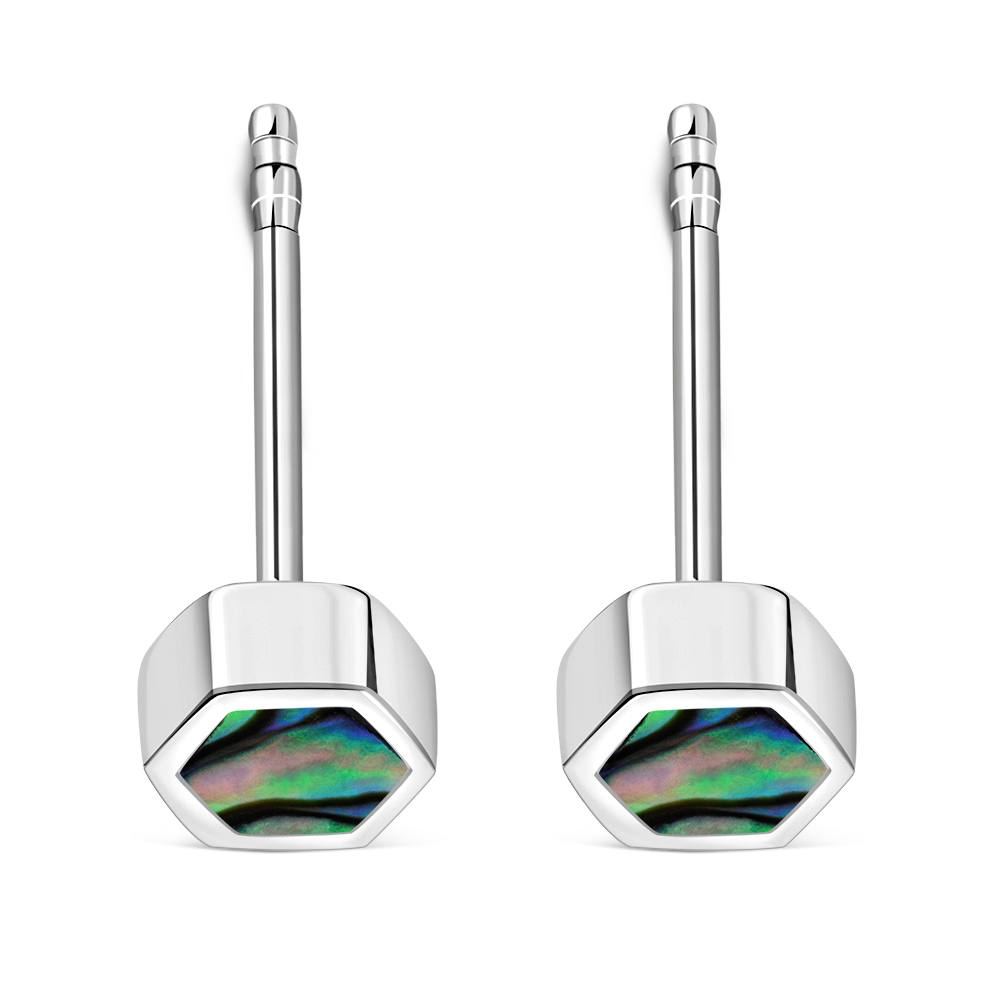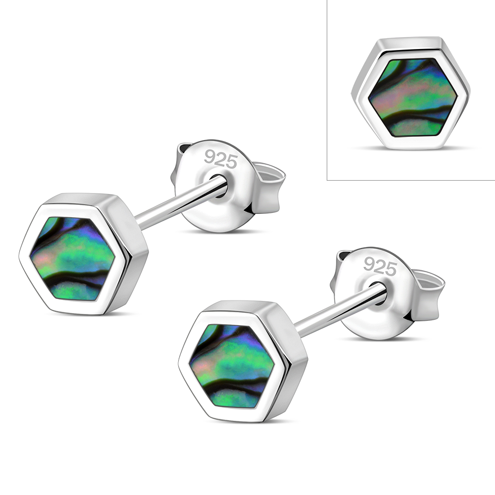 Abalone Shell Hexagon Silver Stud Earrings