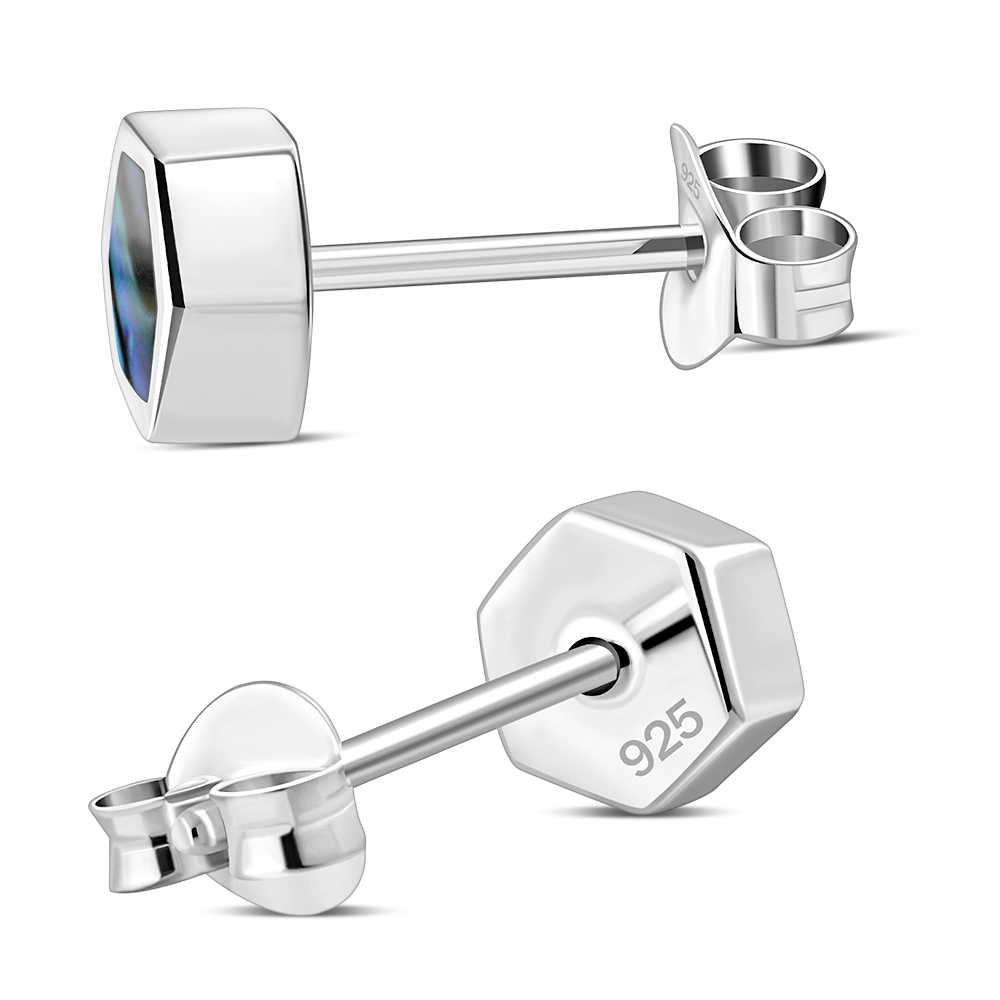 Theme: Abalone Shell Hexagon Silver Stud Earrings.