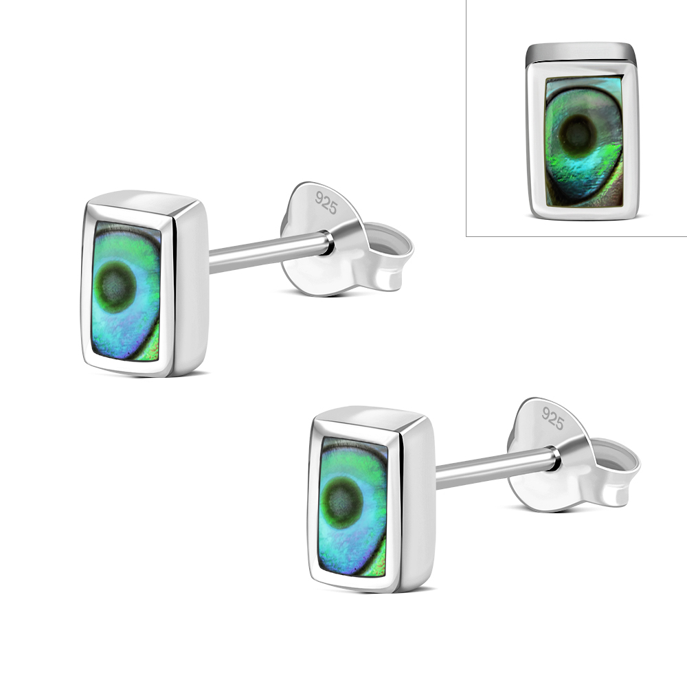 Theme: Abalone Shell Rectangle Silver Stud Earrings.