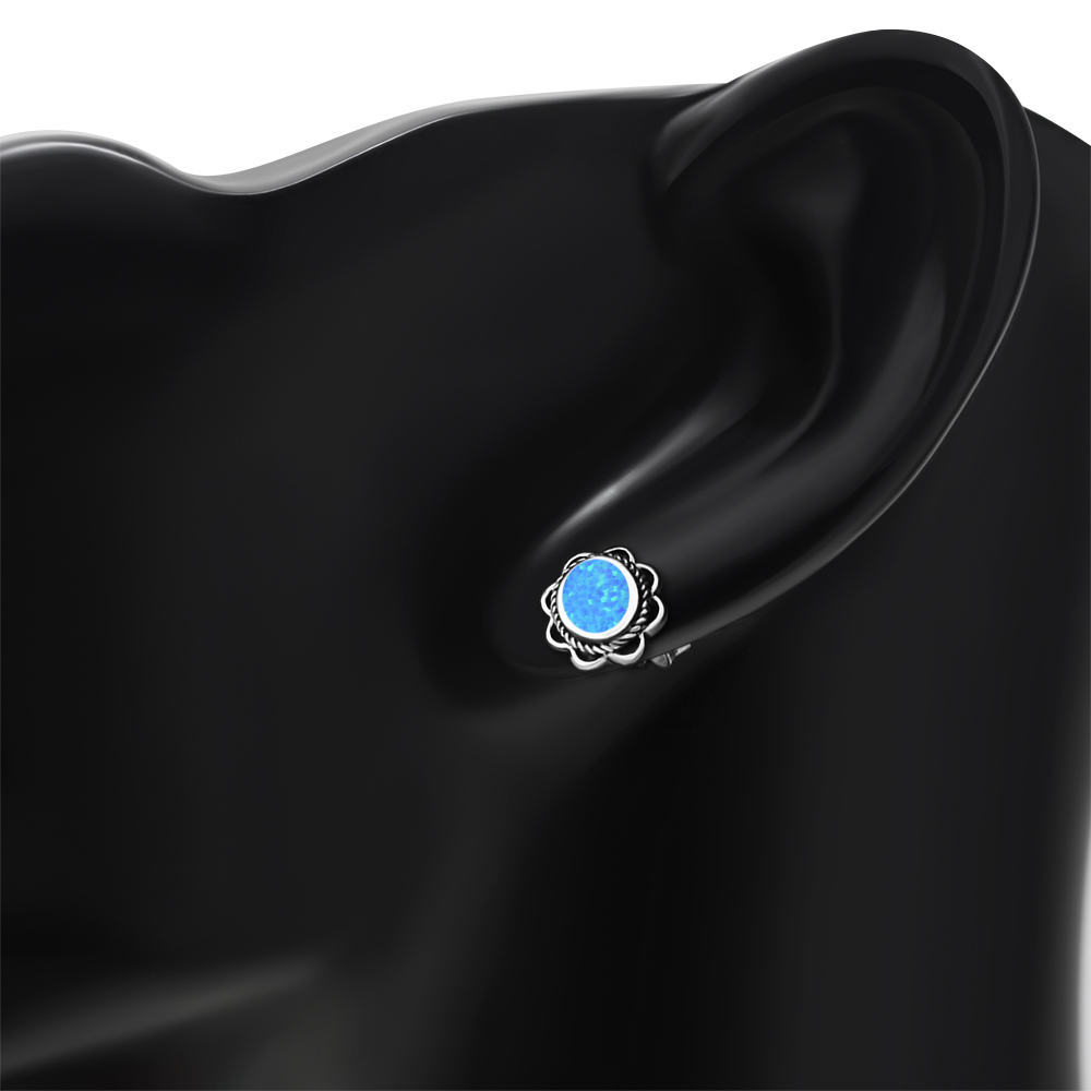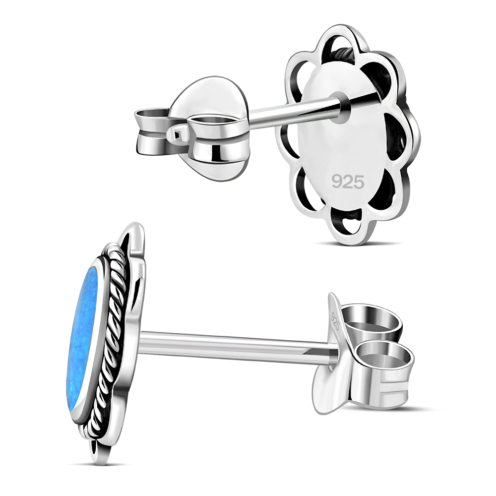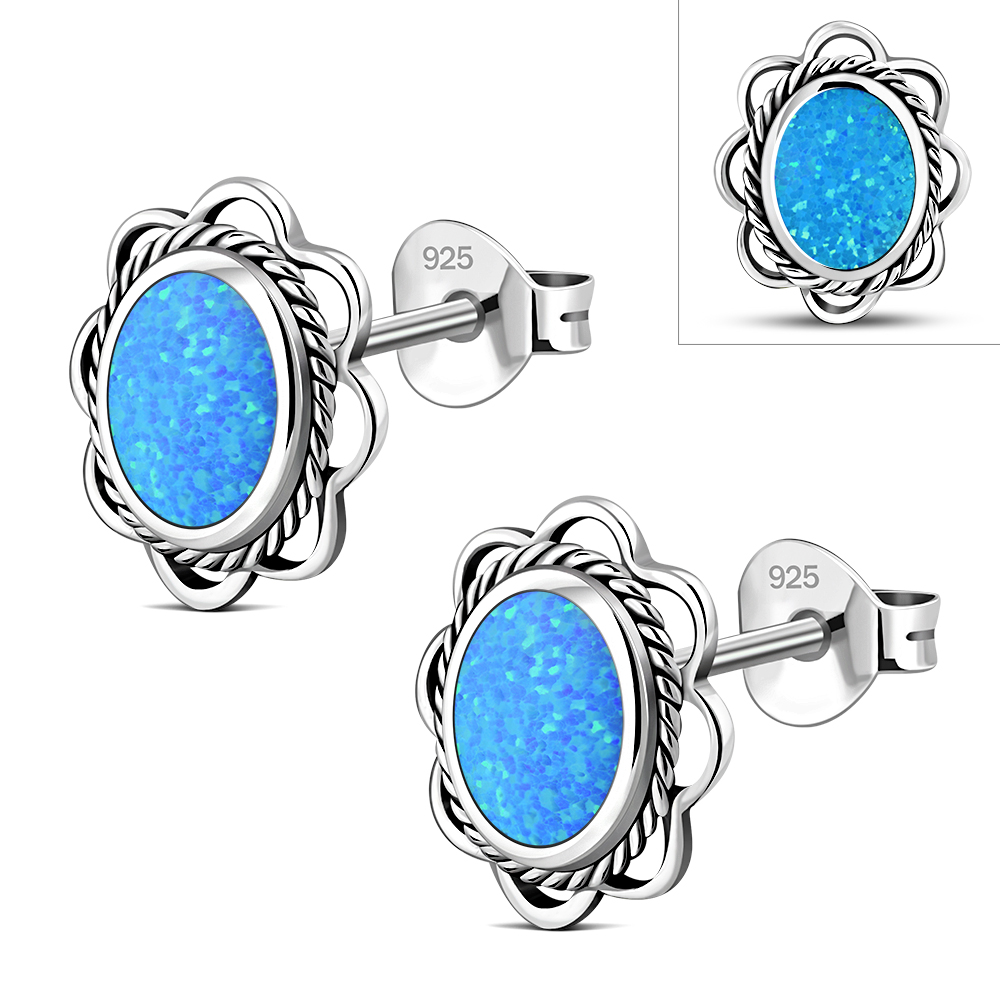Synthetic Opal Oval Braided Edge Silver Stud Earrings