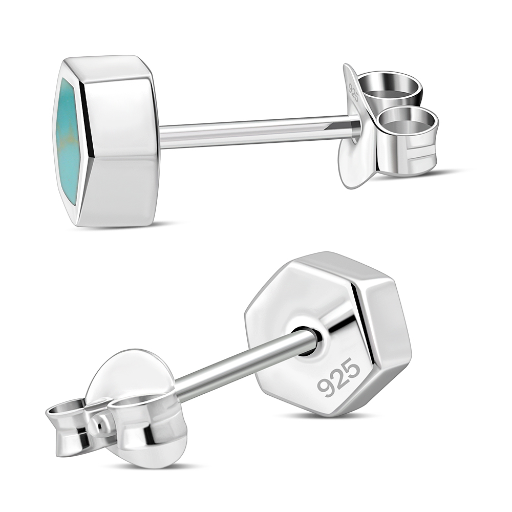 Theme: Turquoise Hexagon Silver Stud Earrings.