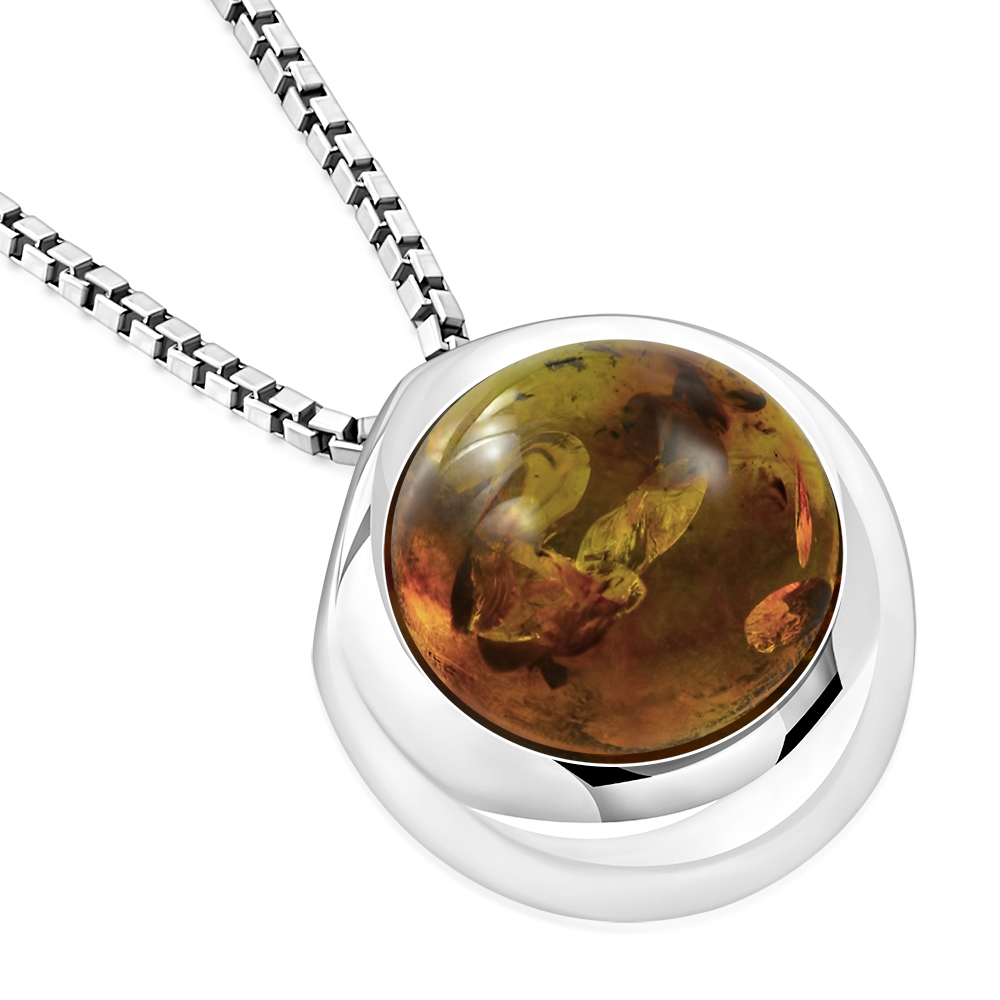 Baltic Amber Round Silver Pendant