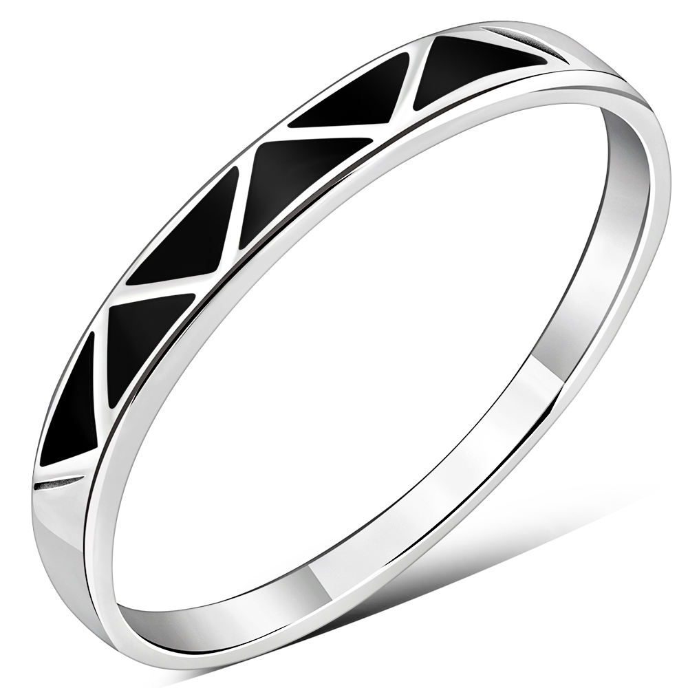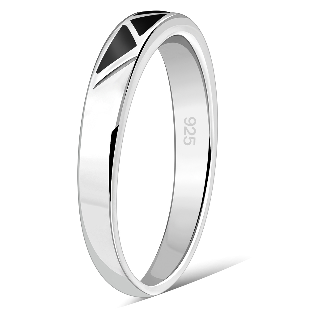 Black Onyx Silver Band Ring, r496
