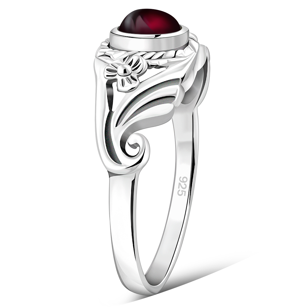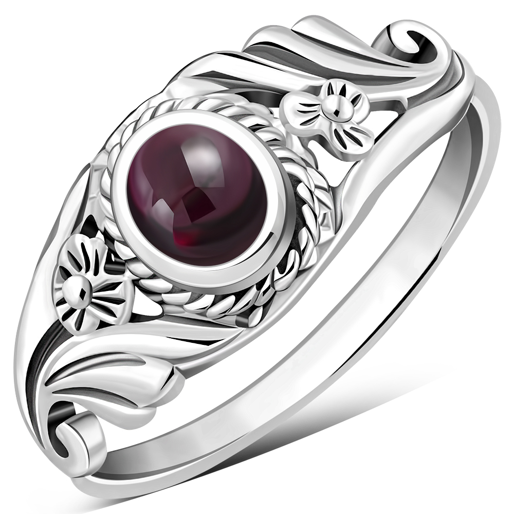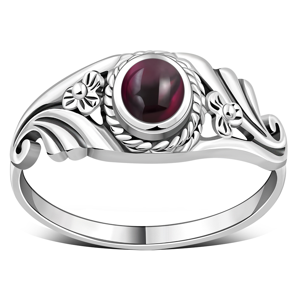 Flower Garnet Sterling Silver Stone Ring