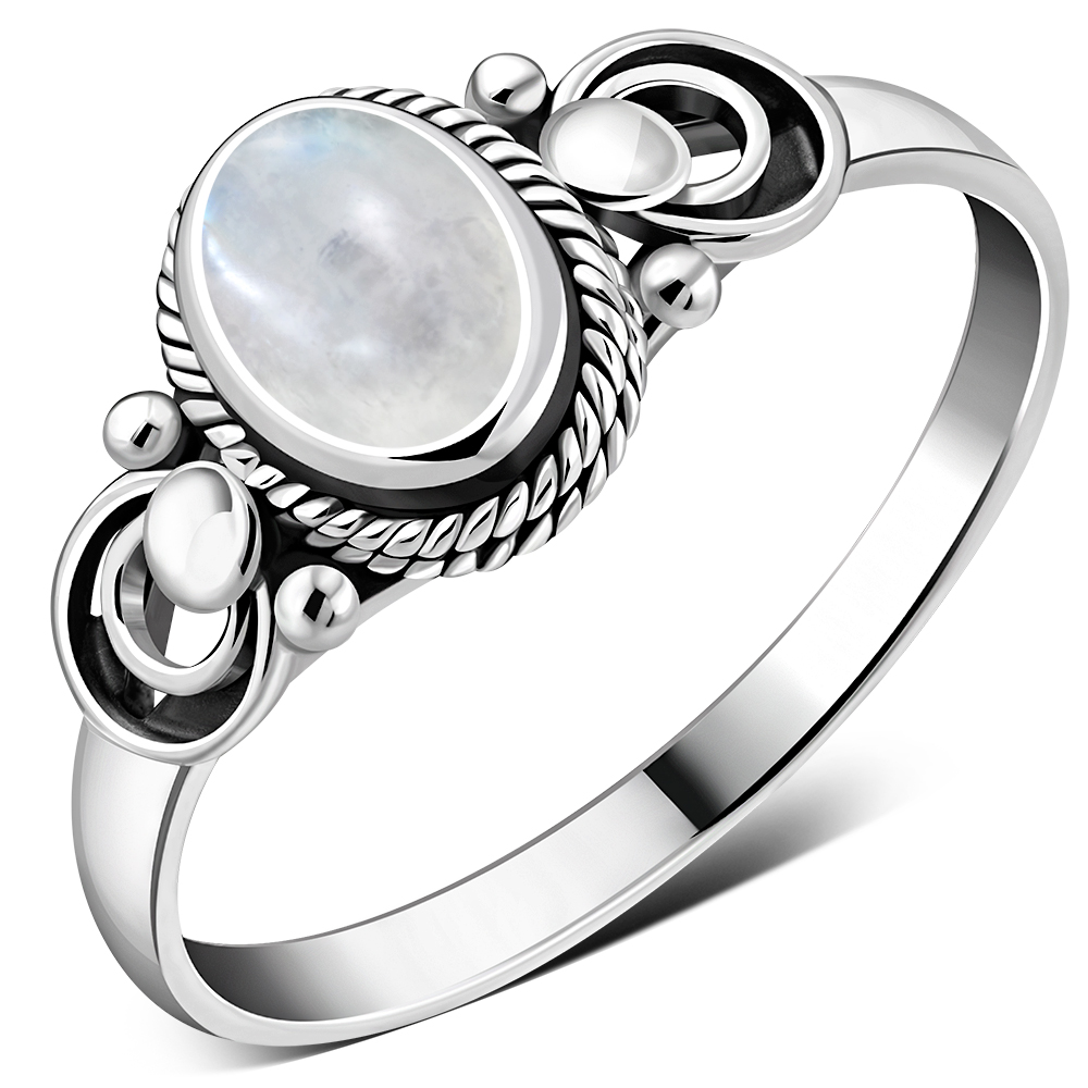 Ethnic Sterling Silver Rainbow Moonstone Ring.