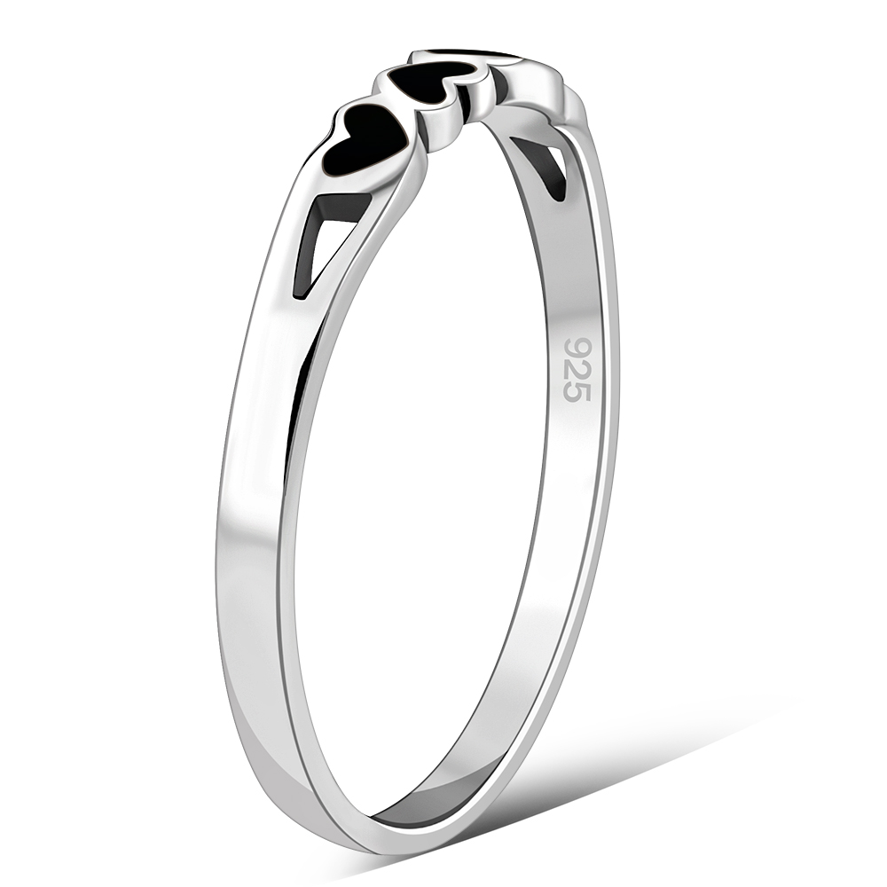 mother of Pearl Silver Ring, Hearts Black Onyx Silver Ring, Ethnic Heart