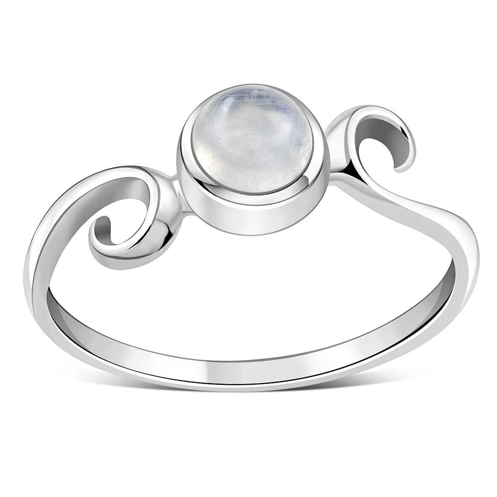 Rainbow Moonstone Delicate Spiral Silver Ring