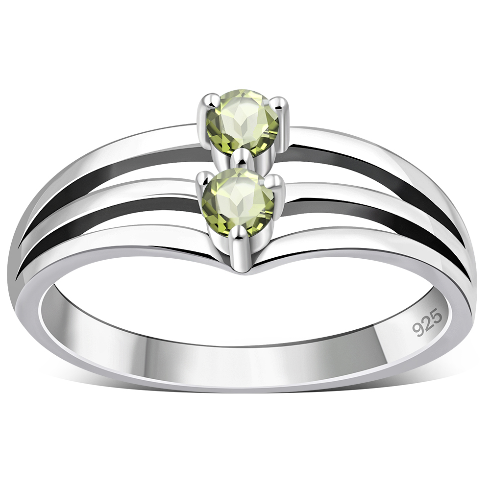 3 Row Split Shank Silver Ring set w/ Faceted Peridot Stone, r527