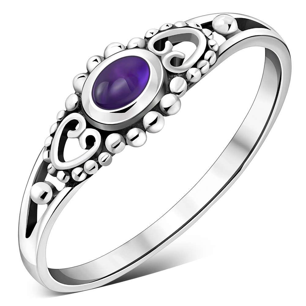 Jewelry as: Thin Heart Amethyst Stone Silver Ring, Thin Ethnic Rainbow