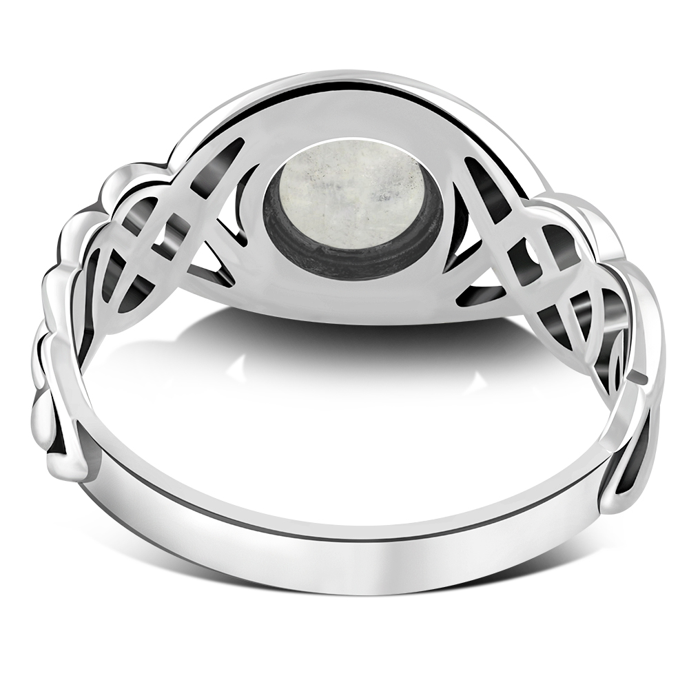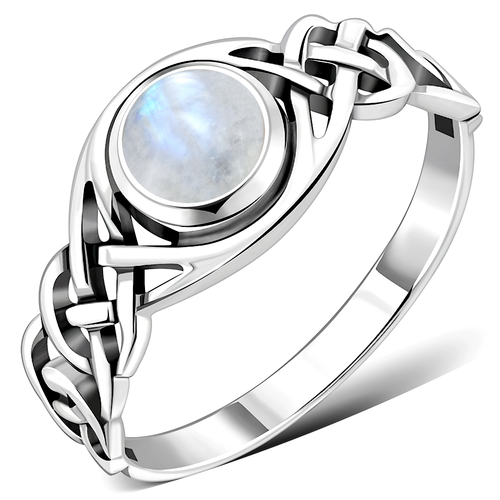 Stone Sterling Silver Rings, Rainbow Moonstone Celtic Knot Sterling Silver Ring, Celtic