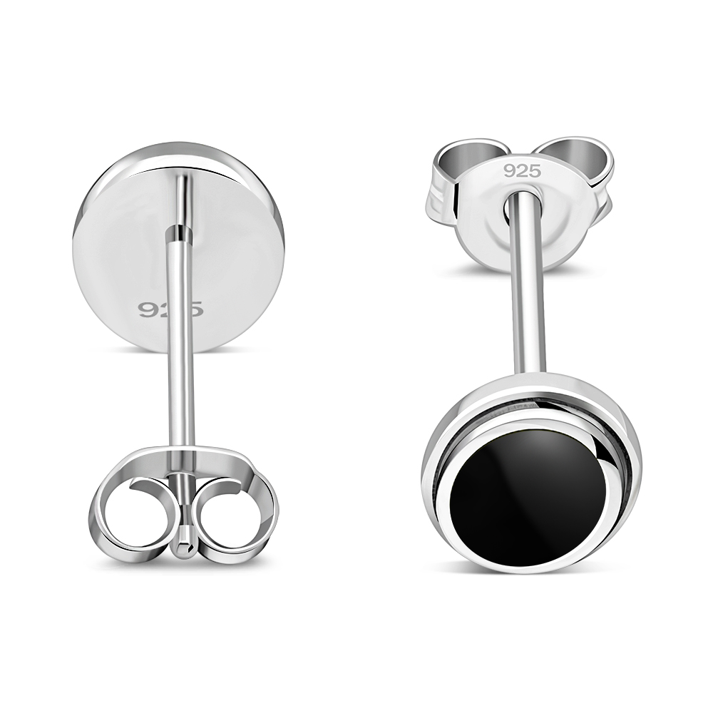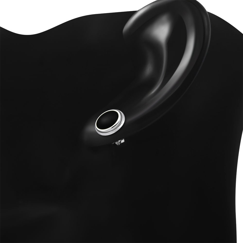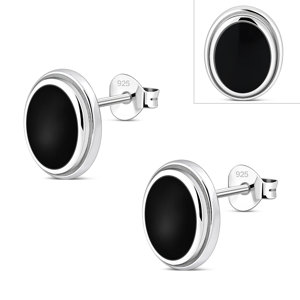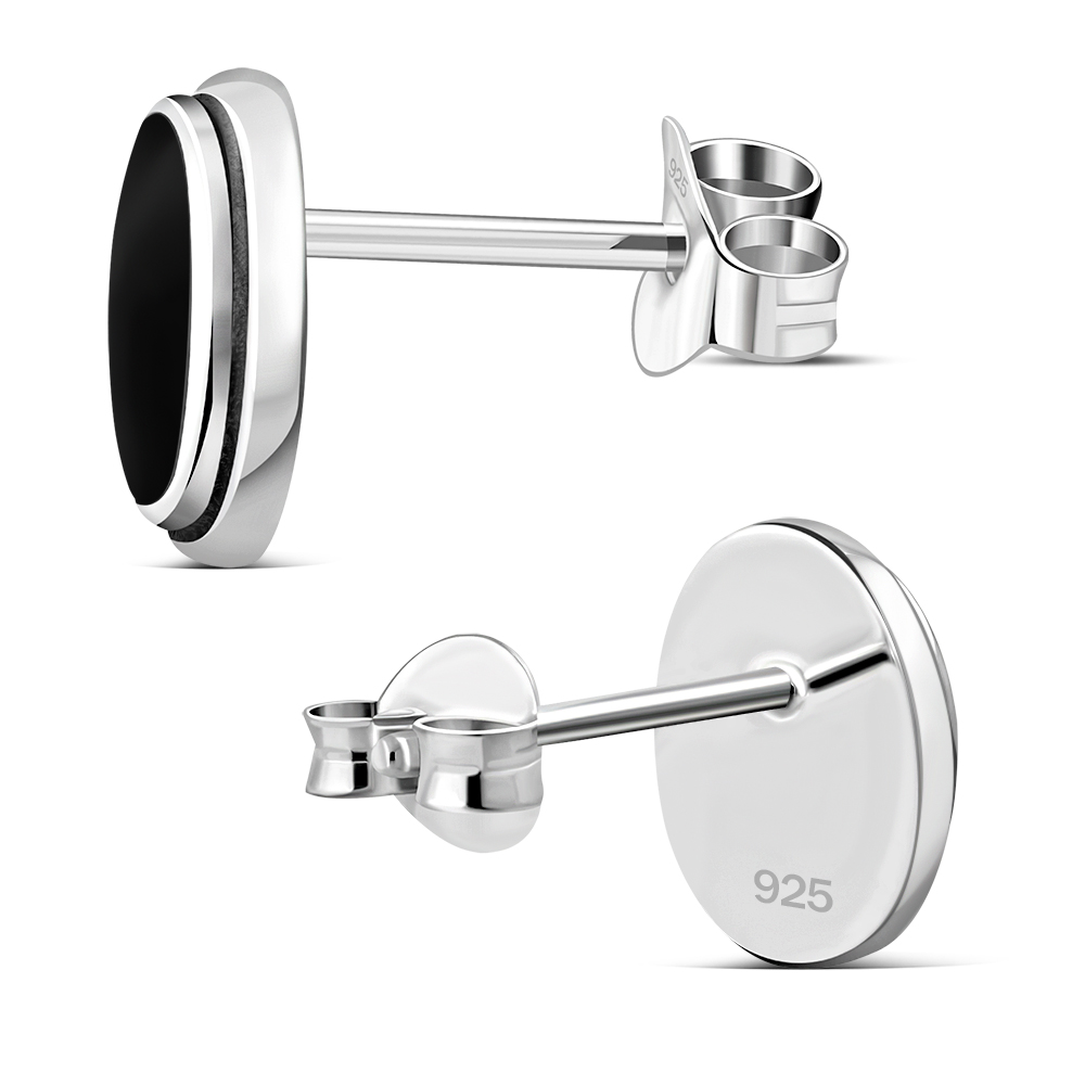 Theme: Black Onyx Oval Stud Silver Earrings.