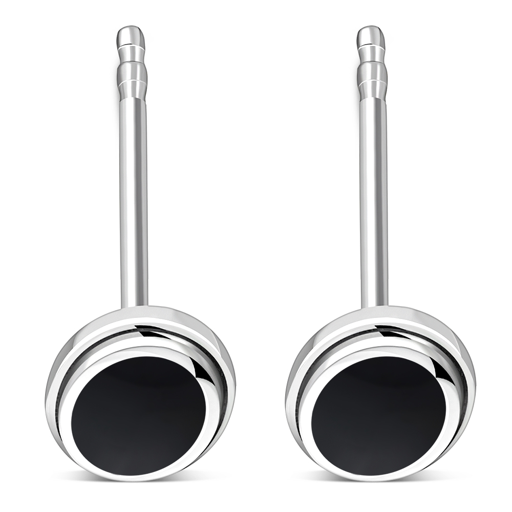 Black Onyx Oval Stud Silver Earrings
