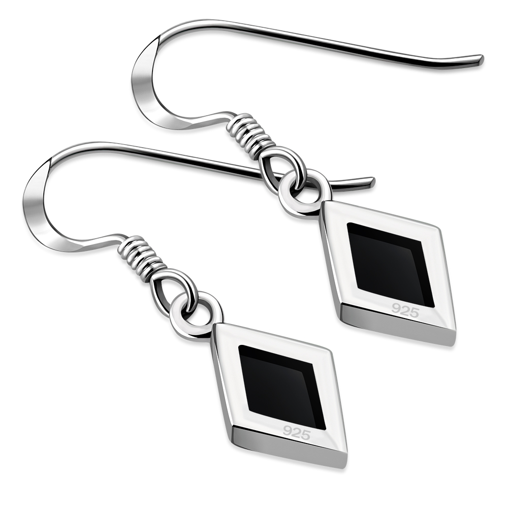 Theme: Black Onyx Rhombus Shape Silver Earrings.