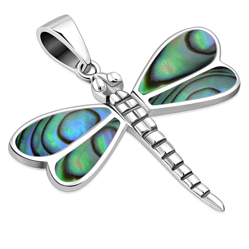 Theme: Abalone Shell Dragonfly Silver Pendant.