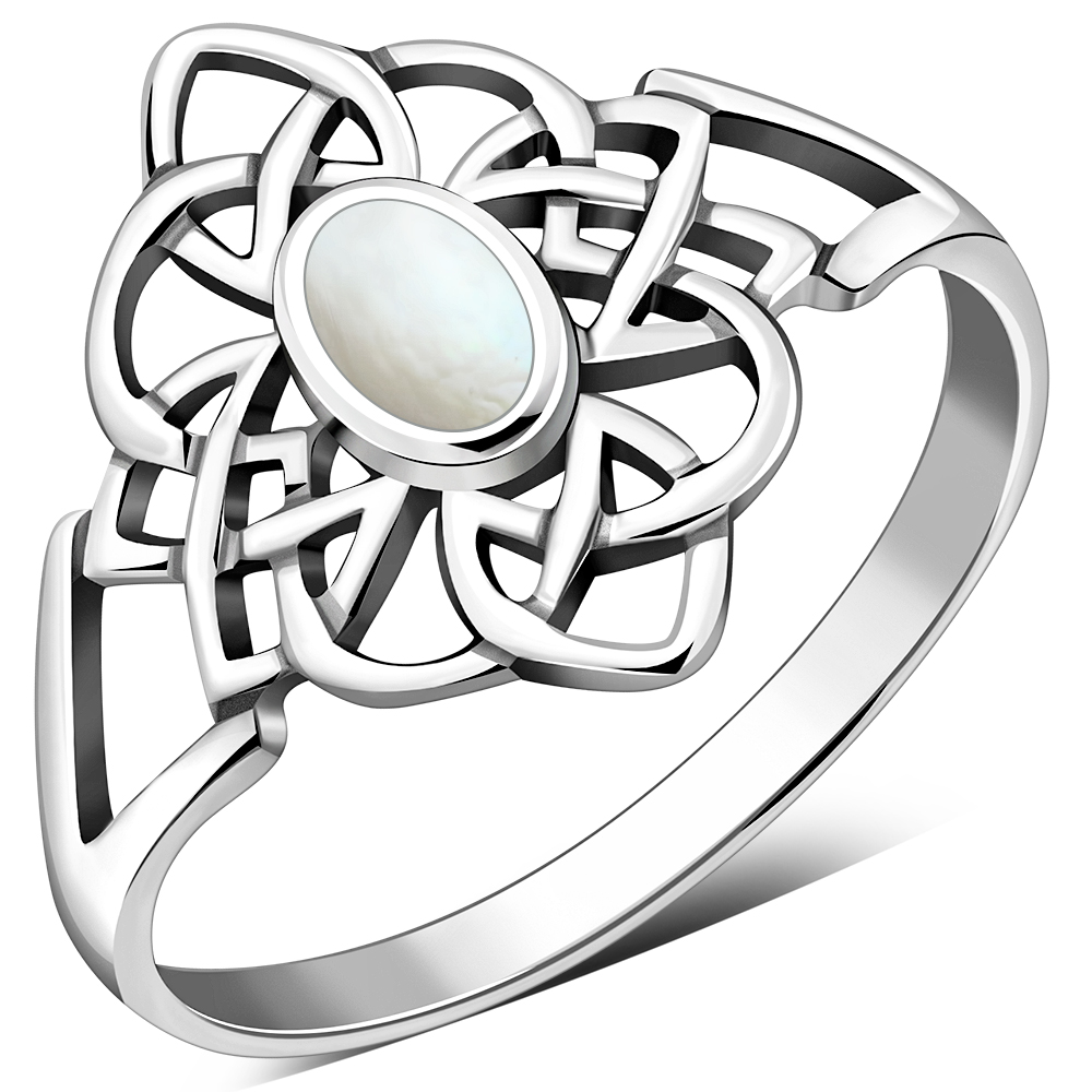 Theme: Mother of Pearl Celtic Knot Silver Ring.