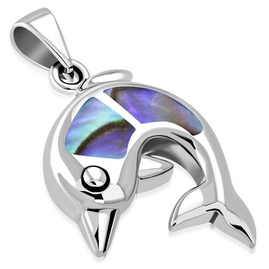 Theme: Abalone Shell Dolphin Silver Pendant.
