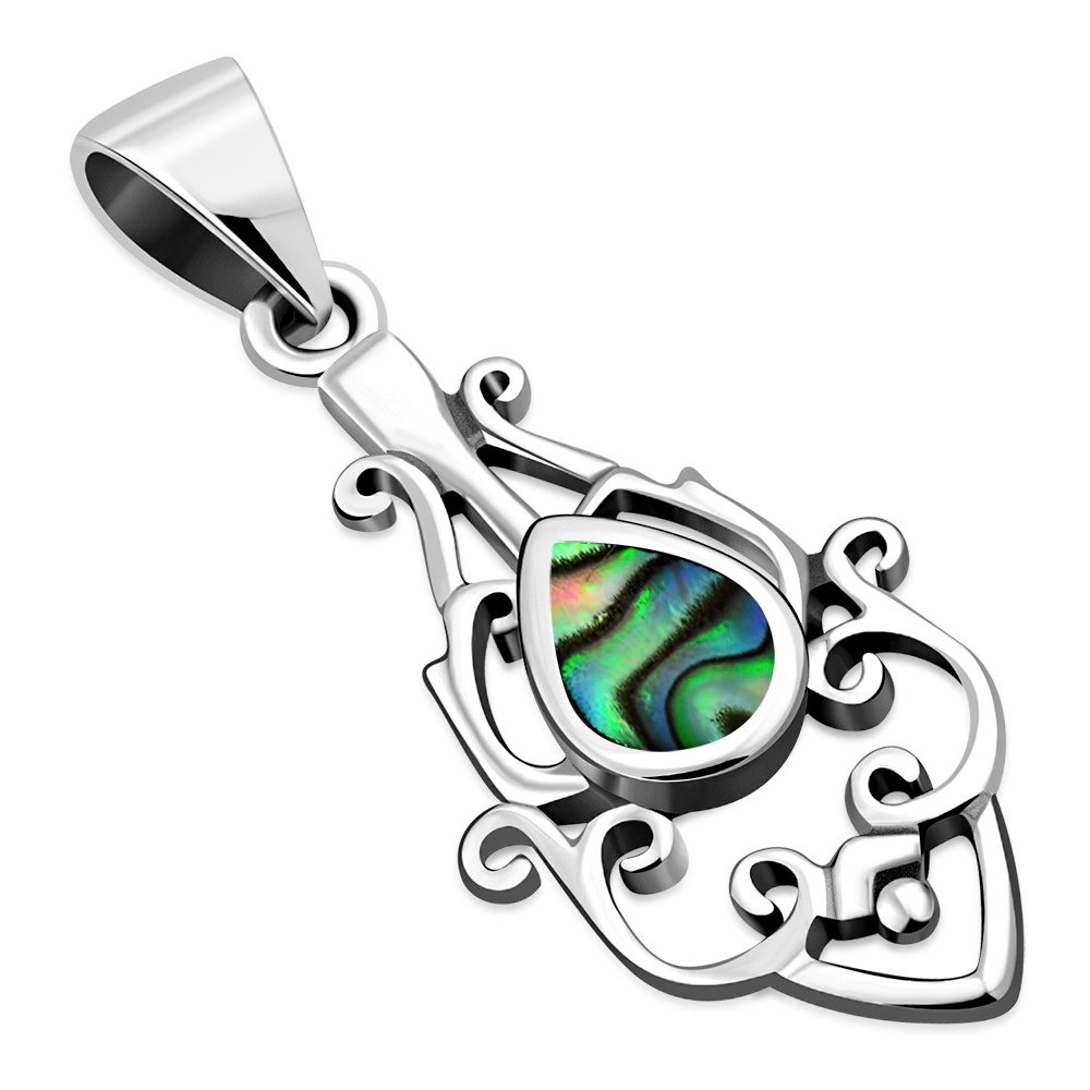 Abalone Shell Ethnic Sterling Silver Drop Pendant
