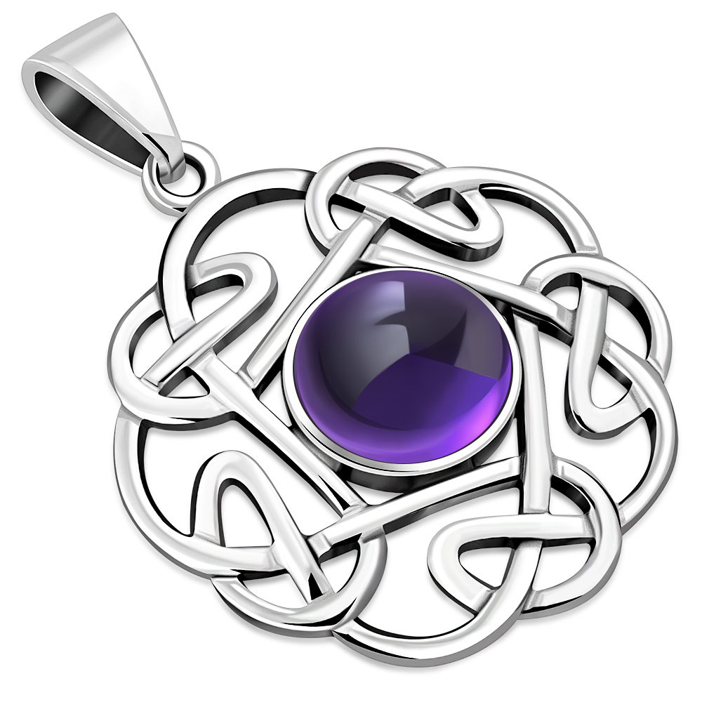 Amethyst Round Celtic Knot Silver Pendant