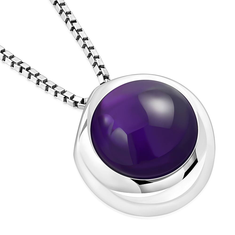 Amethyst Stone Round Silver Pendant