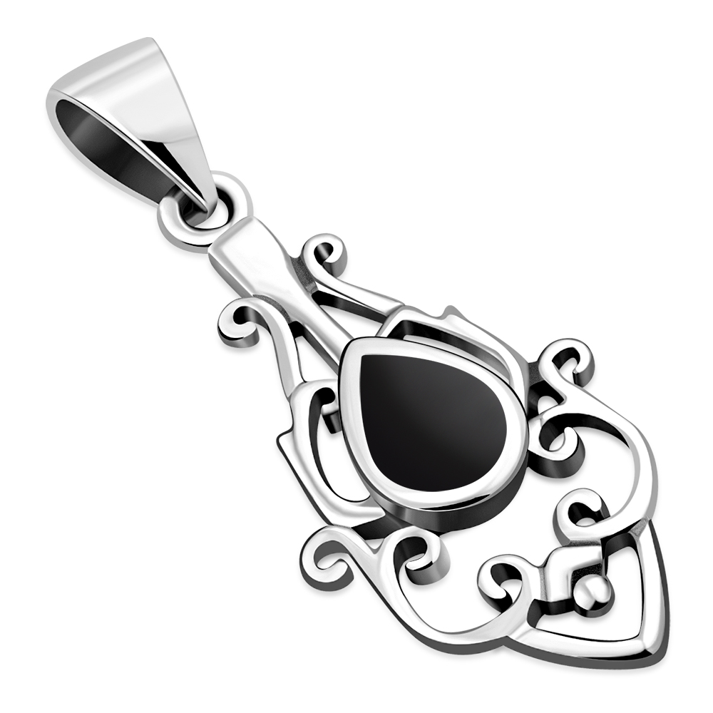 Black Onyx Ethnic Sterling Silver Drop Pendant