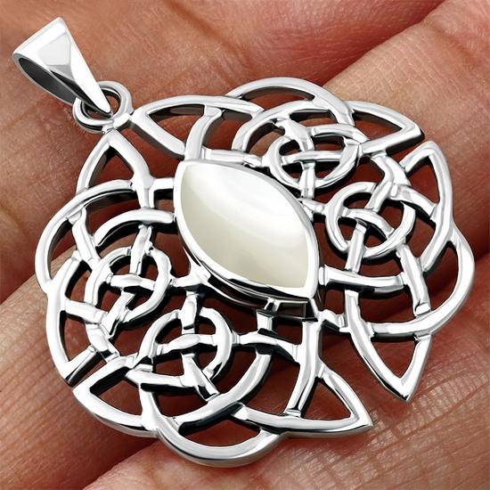 Mother of Pearl Trinity Knot Silver Pendant, p496
