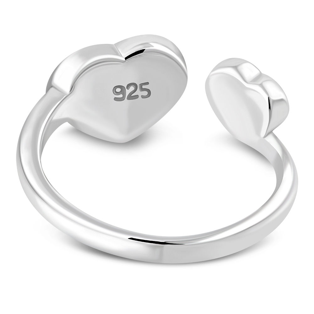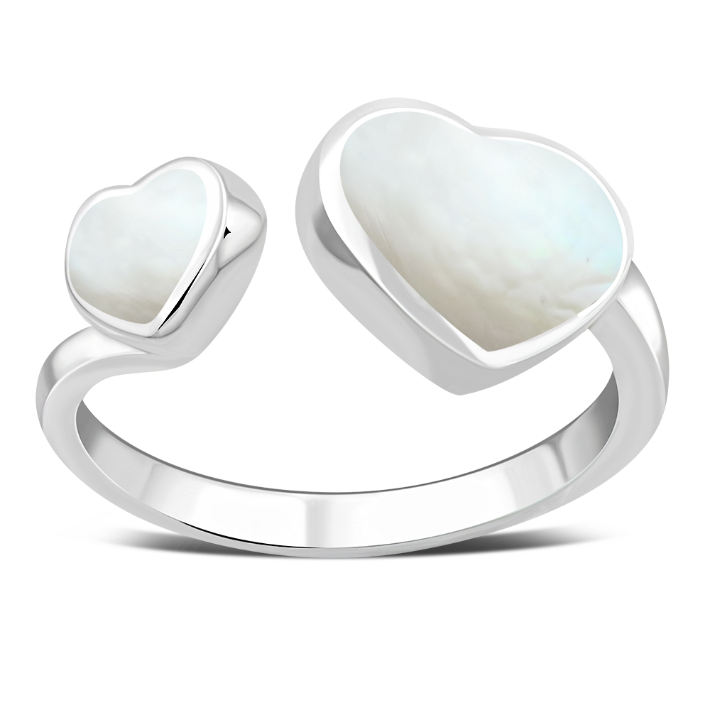 Mother Of Pearl Shell Double Love Heart Sterling Silver Adjustable Open Ring