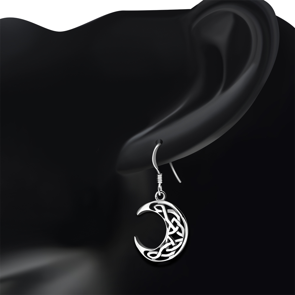 Left and Right Crescent Celtic Knot Silver Earrings