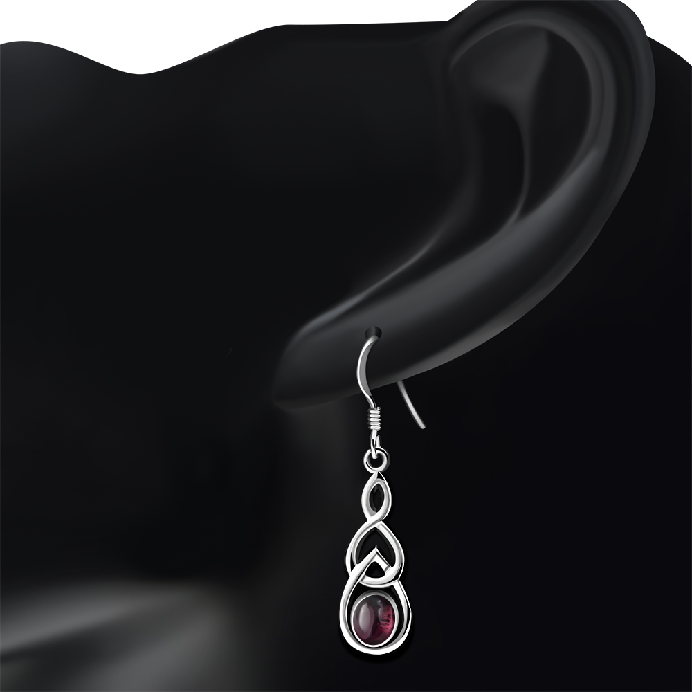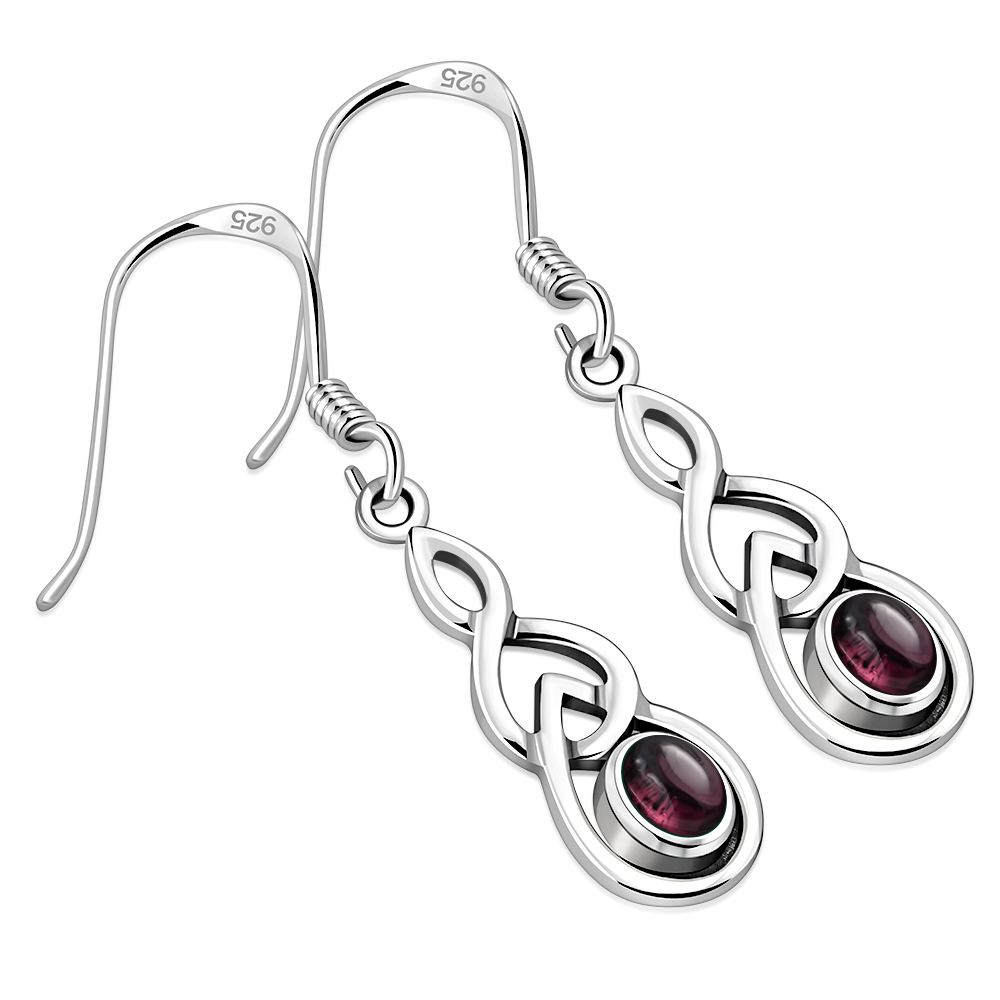 Celtic Knot Silver Earrings w Garnet