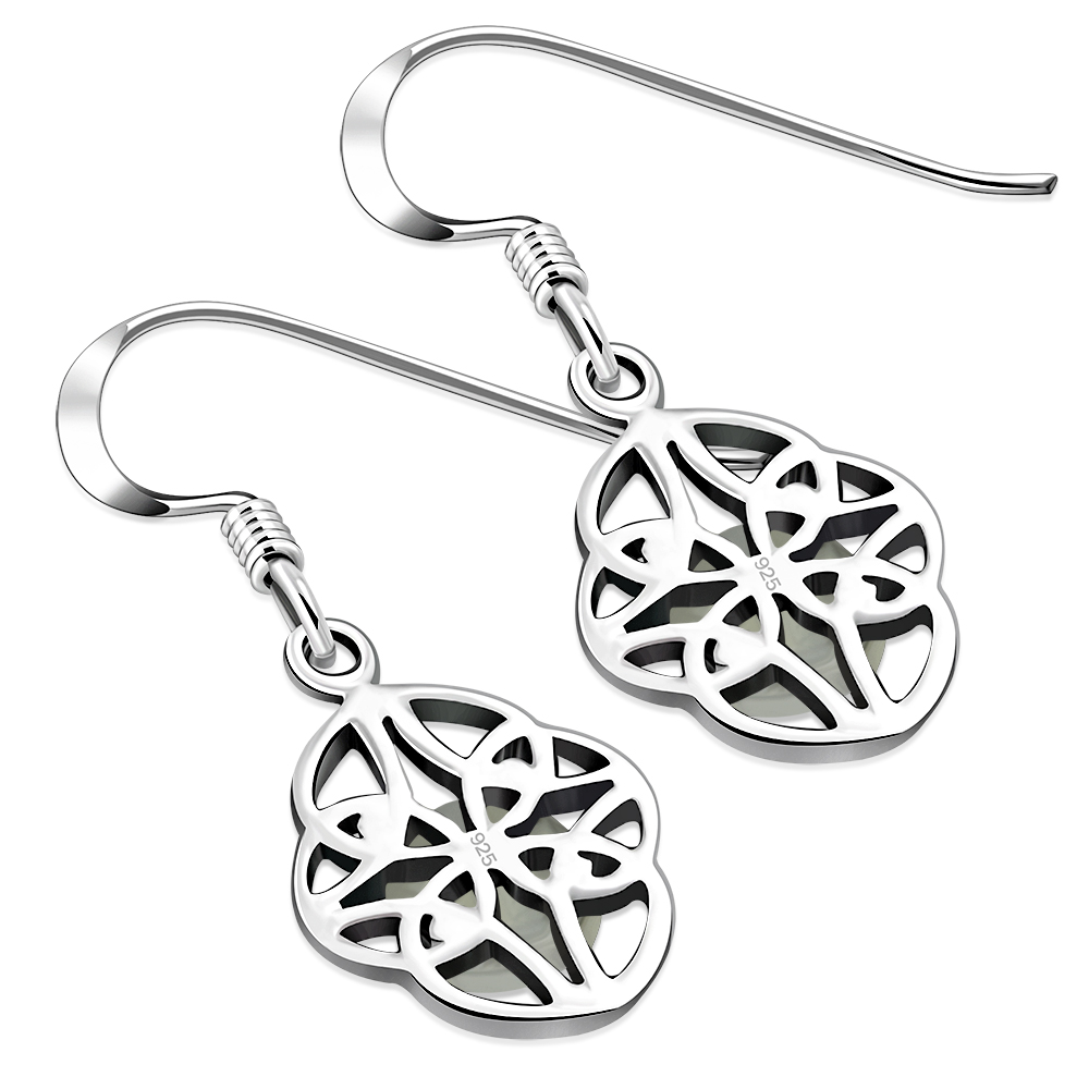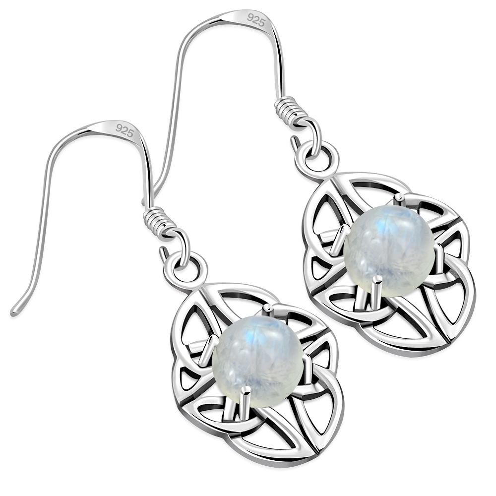 Theme: Rainbow Moonstone Celtic Knot Silver Earrings.