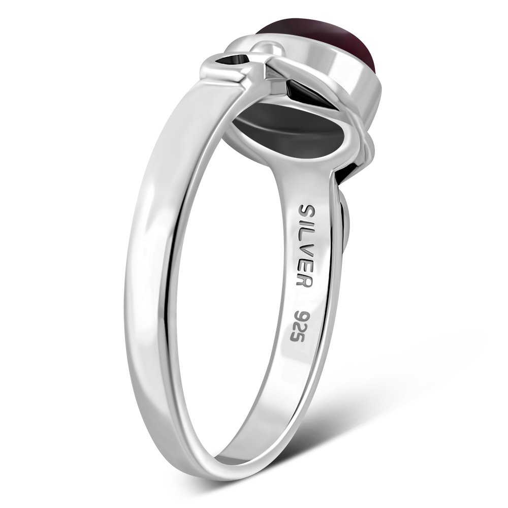 Garnet Stone Celtic Knot Sterling Silver Ring